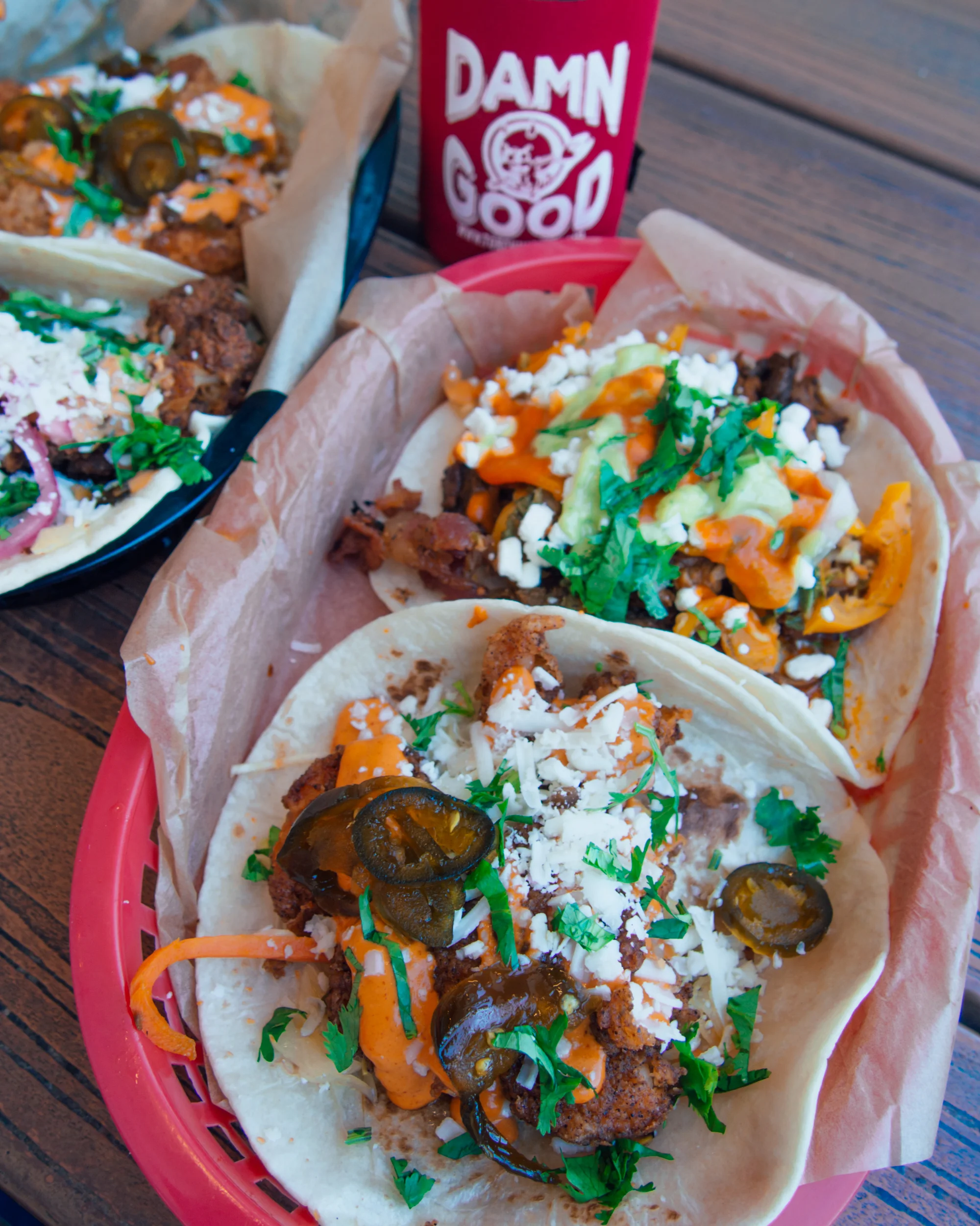The final taco, The Scalding Pig, has pasilla and ghost pepper stewed pork, jack cheese, escabeche, sour cream and cilantro with a drizzle of Torchy’s XXX Hot Sauce. If any of you are brave enough to try this one - please let me know how it goes! If I were you, I would have a carton of milk and a stack of extra tortillas readily available :)